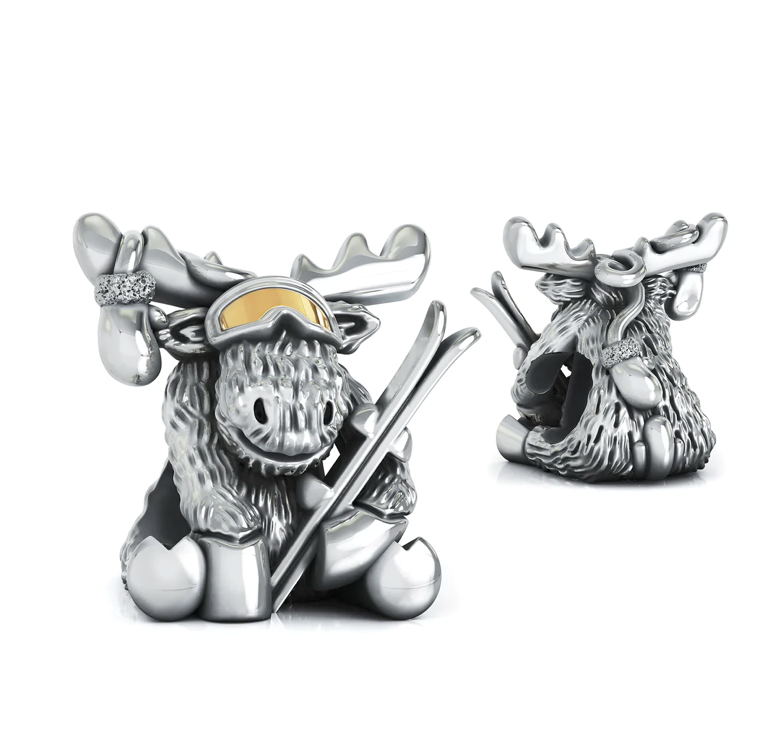 Bella Fascini Winter Ski Moose Bead Charm w Solid 18K Gold Goggle Lens