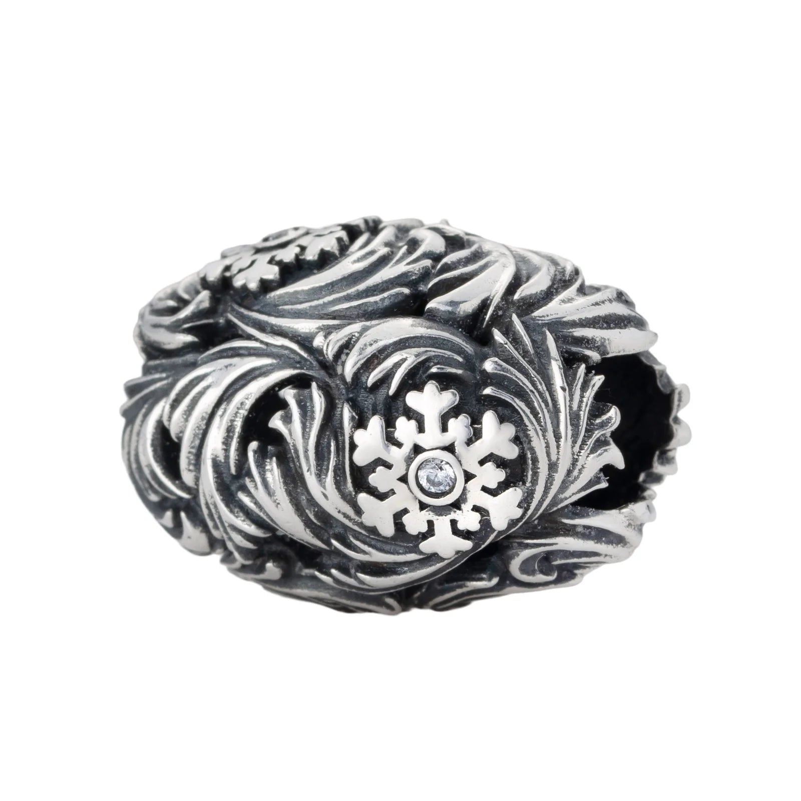 As the first frost whispers across the land, the Blizzard Gems Barrel is born - a celebration of winter's artistry. Intricate silver swirls flow across the charm, reminiscent of frost patterns forming on a windowpane, cradling snowflakes as delicate and unique as dreams. At their heart glimmer radiant CZ stones, shimmering like the first light of a frozen morning. Hold this charm close, and let it remind you of the quiet magic woven within the calm and the cold.