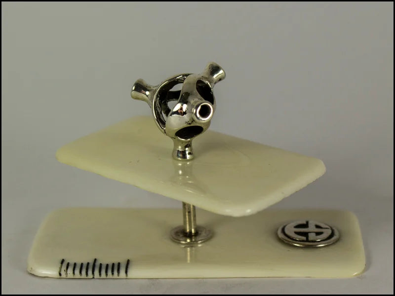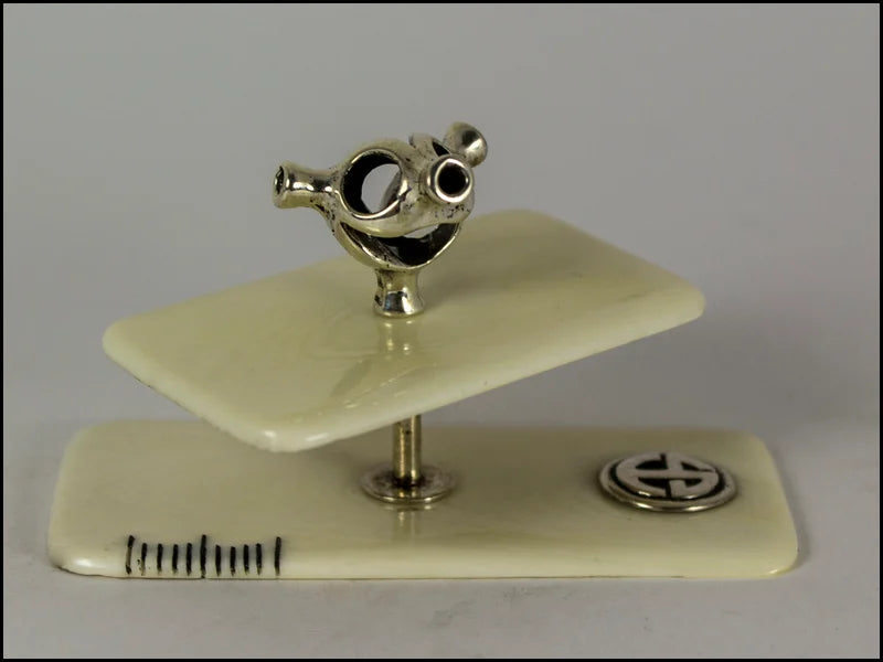 The round form comes from the earth, the cones are symbolising fertility, the crack/mouth is the valleys and the eyes represent the lakes og the planet.