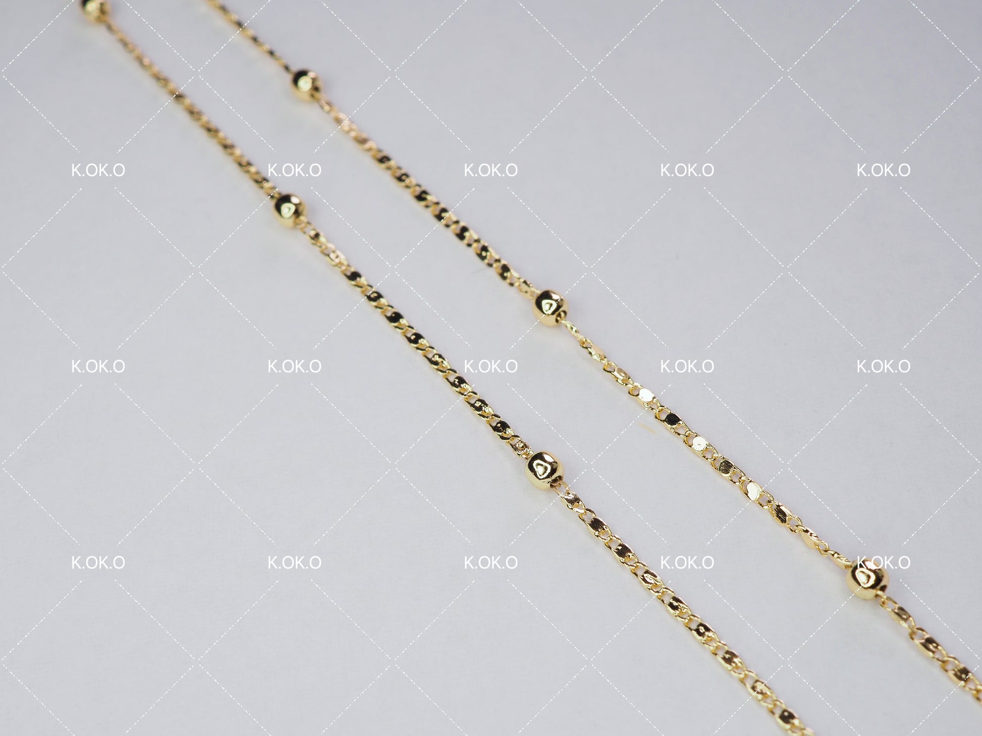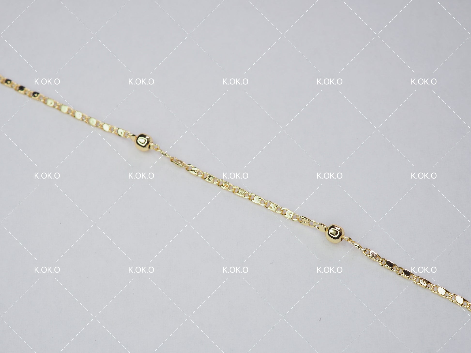 Design: Polished flat chain with mini gold beads