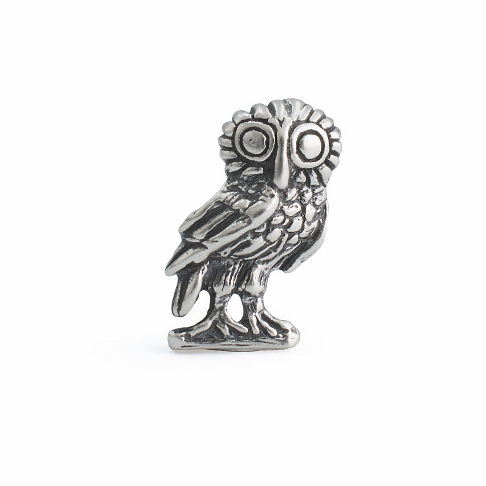 The owl is one of the most famous and widely used symbols from ancient Greece. Traditionally it represents or accompanies the goddess Athena. The reasons behind the association of Athena and the owl are lost in time. But the Owl (Athene noctua), like a bird, is found in all regions of the Earth except Antarctica, most of Greenland, and some remote islands, so it might be because the qualities that have made it so widespread are the same qualities as the goddess Athena is known for as these following skills: wisdom, courage, vision, strength. The Romans adopted both the goddess Athena and her owl. In Roman mythology, her name is Minerva, goddess of the same qualities as Athena. The association between these qualities and the owl has survived up to our time. Even today many public institutions and private associations are using the owl as a symbol of wisdom, knowledge and vision. This bead is a copy of the owl pictured on an ancient silver coin: The tetradrachm, that was in wide circulation from 510 to 38 BC.
