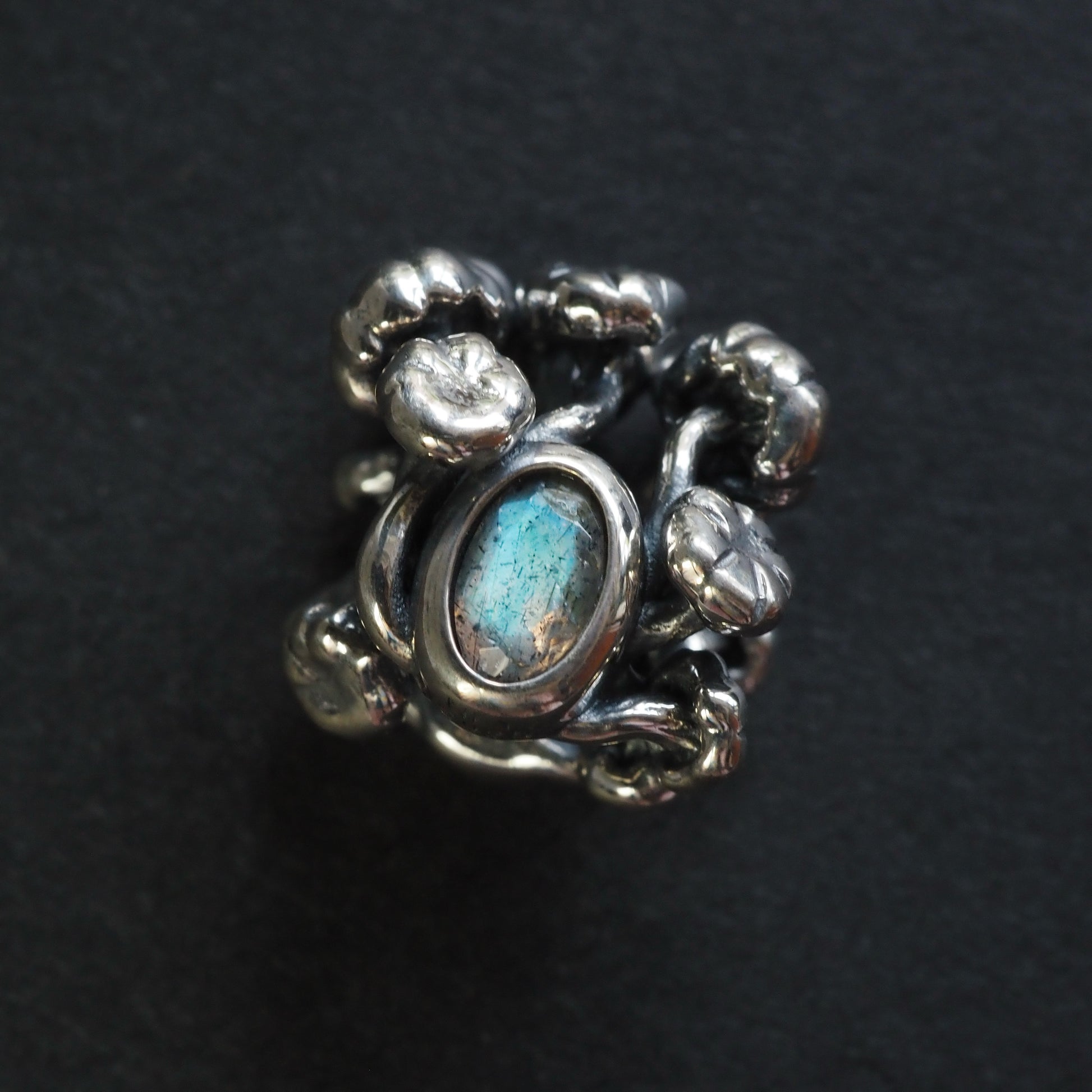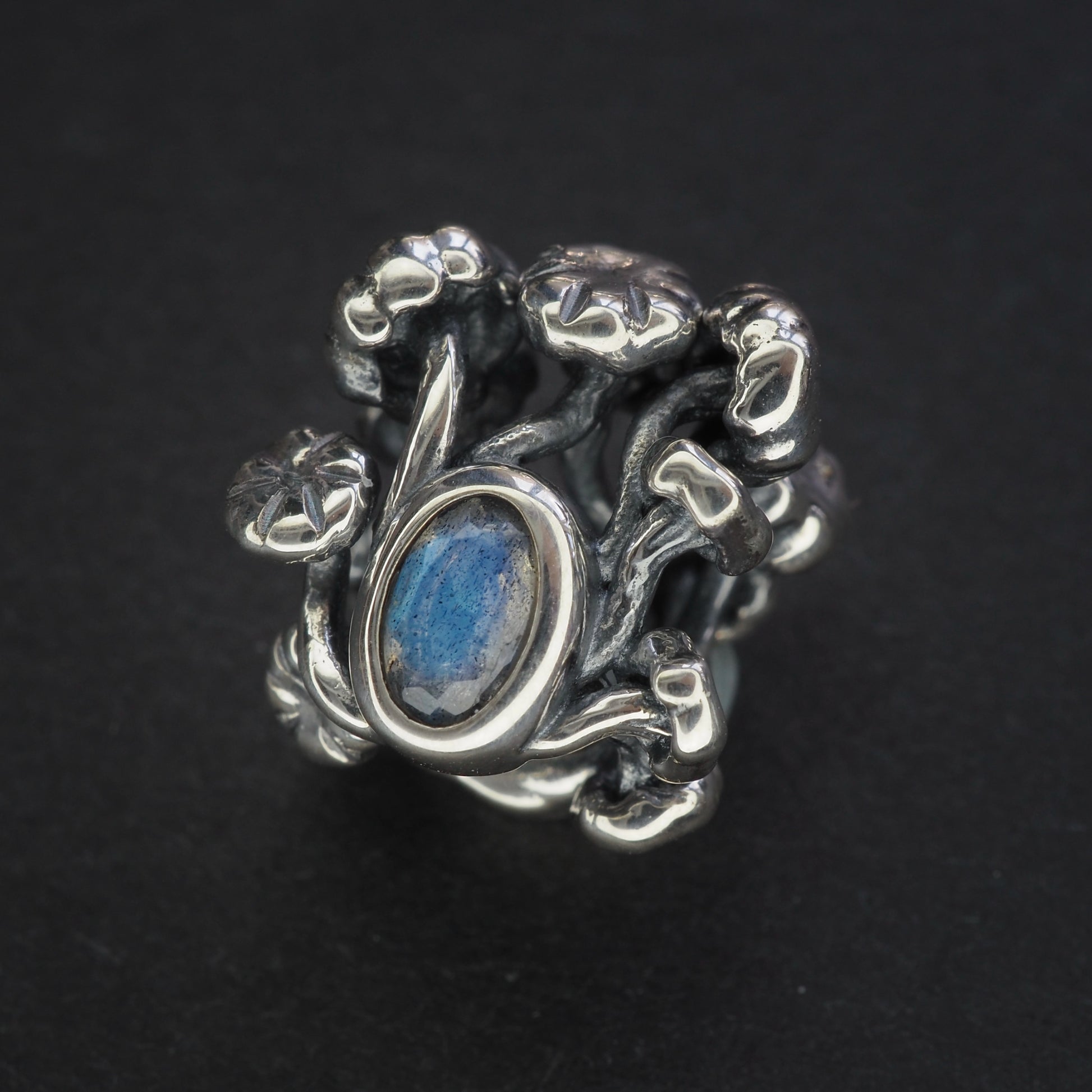 This mushroom-shaped labradorite bead features a stunning and vivid blue flash. The stone shimmers with an intense iridescent glow, revealing aurora-like hues when viewed from different angles. Its enchanting shape combined with natural brilliance gives it an otherworldly charm and a touch of magic.